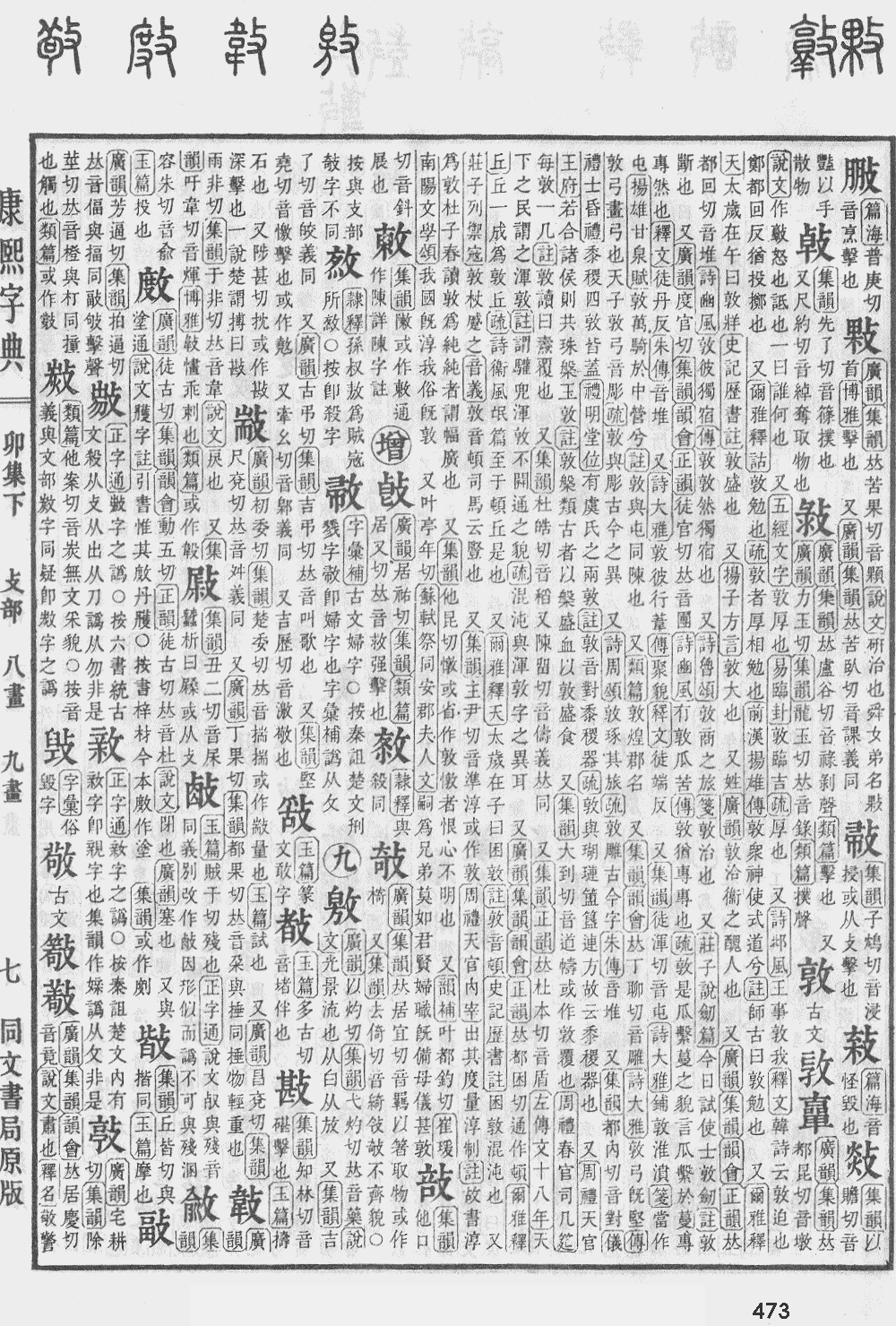 【卯集下】【攴字部】 敬; 康熙笔画:13; 页码:页473第35