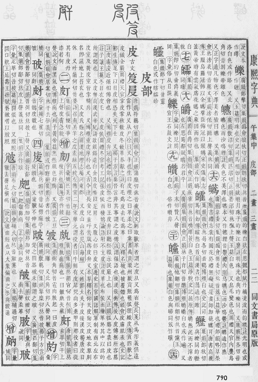 【午集中】【皮字部】 皯; 康熙笔画:8; 页码:页790第18