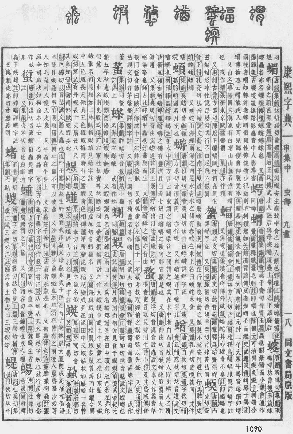 【申集中】【虫字部】 蝩; 康熙笔画:15; 页码:页1090第21