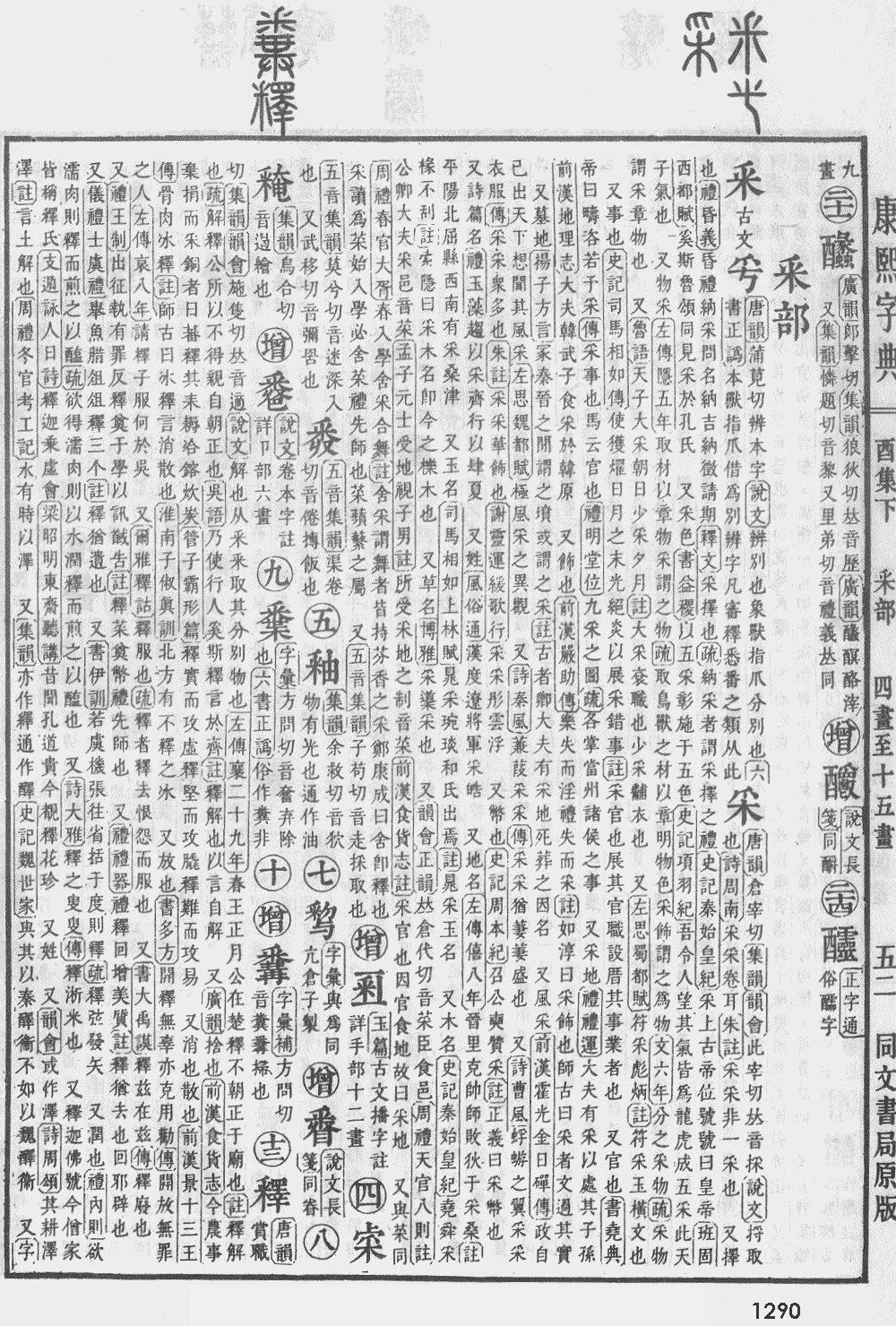 【酉集下】【釆字部】 釋; 康熙笔画:20; 页码:页1290第10