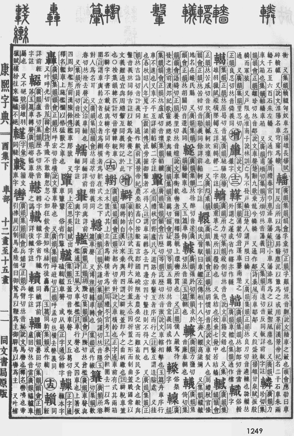【酉集下】【車字部】 轟; 康熙笔画:21; 页码:页1249第28