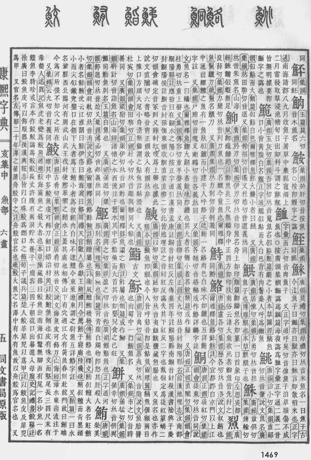【亥集中】【魚字部】 鮪; 康熙笔画:17; 页码:页1469第21