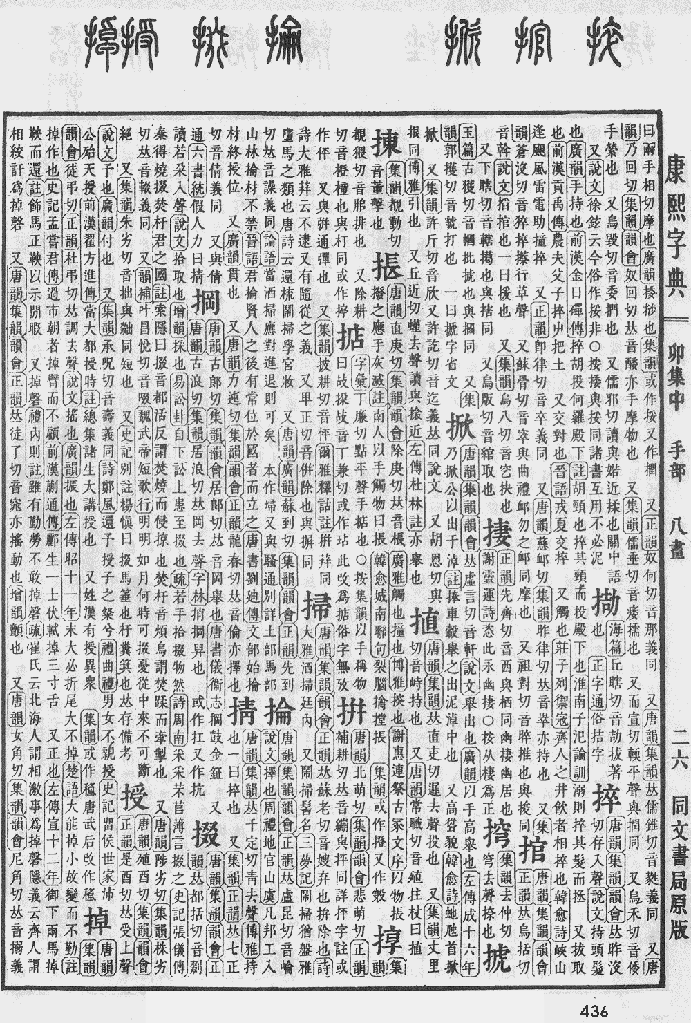 【卯集中】【手字部】 掇; 康熙笔画:12; 页码:页436第18