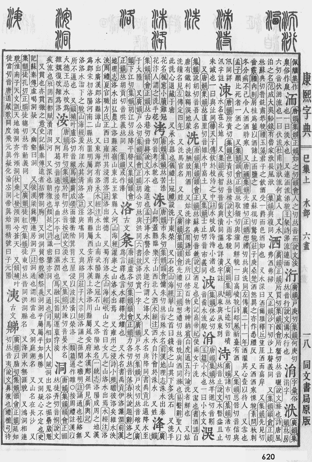 【巳集上】【水字部】 洞; 康熙笔画:10; 页码:页620第18