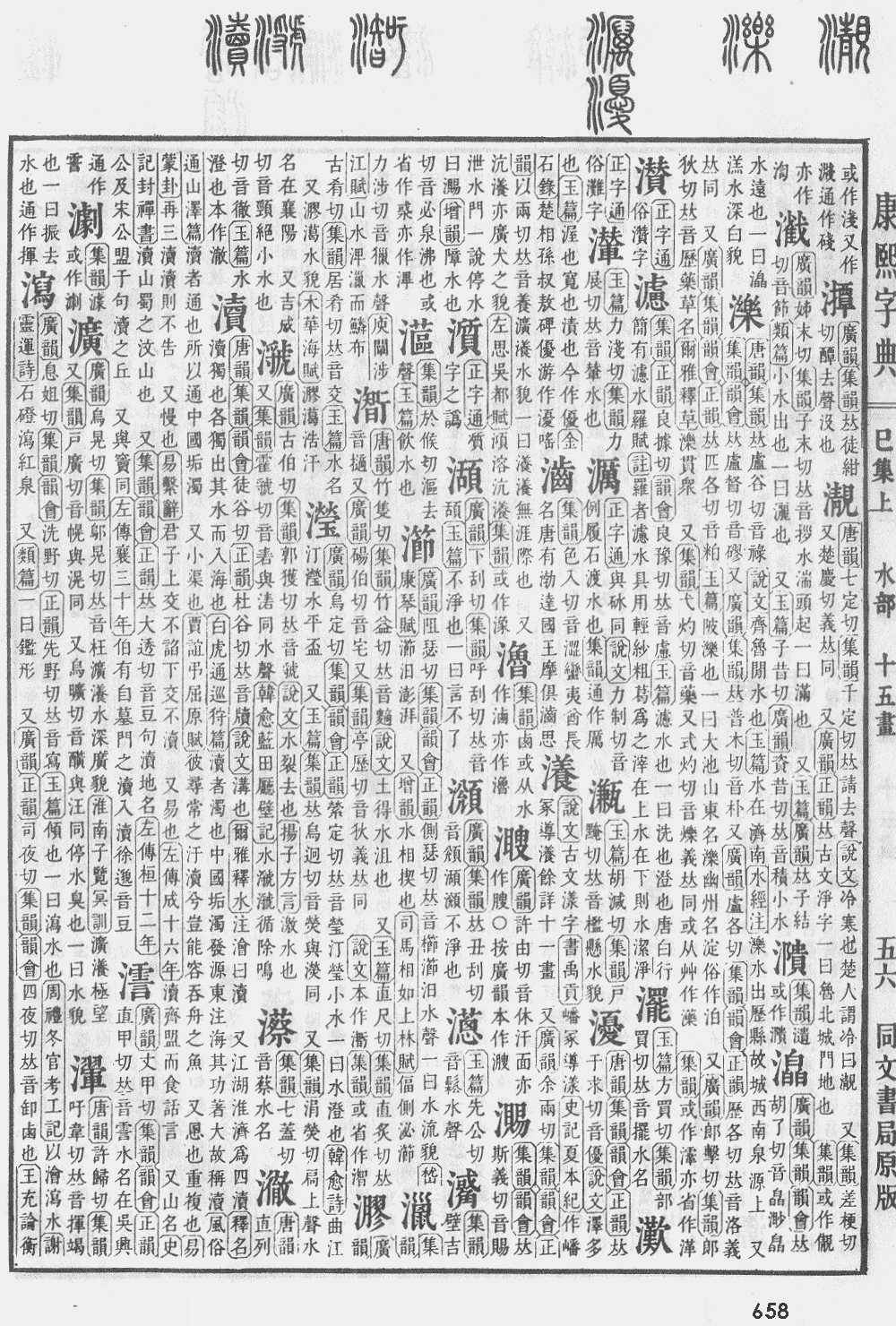 【巳集上】【水字部】 濽; 康熙笔画:19; 页码:页658第07